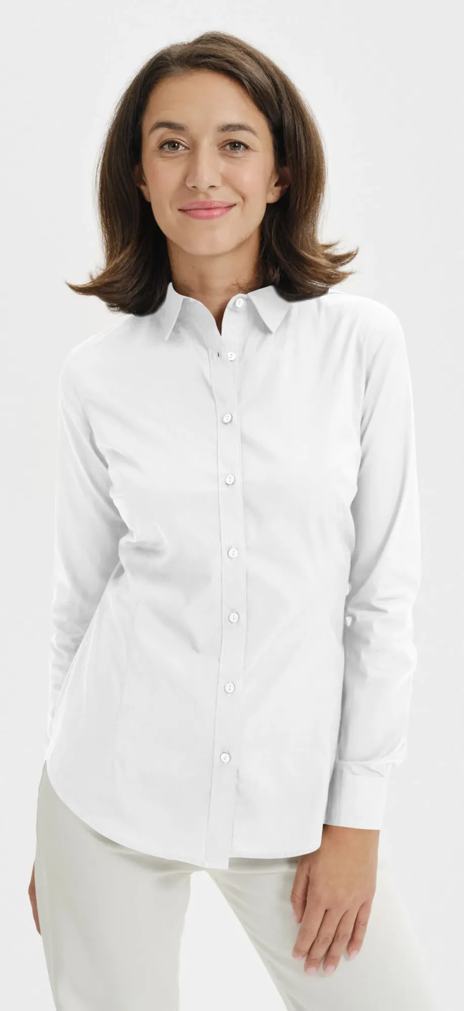 Dámska zúžená bavlnená košeľa s dlhými rukávmi.