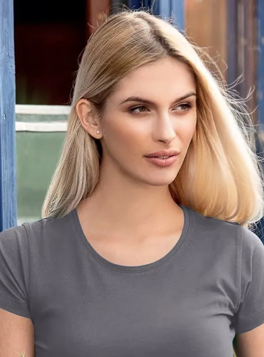 Ak si predstavíte obyčajné bavlnené tričko, predstavíte si pravdepodobne práve 160g/m2. Dámske tričko s veľmi krátkym rukávom má trochu nižšiu gramáž a látka je tak na dotyk o trochu tenšia. Vďaka tomu je látka viac priedušná a v tričku sa budete menej potiť.