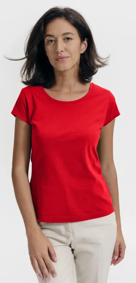 Dámske tričko zúžené s okrúhlym výstrihom, červená, XS