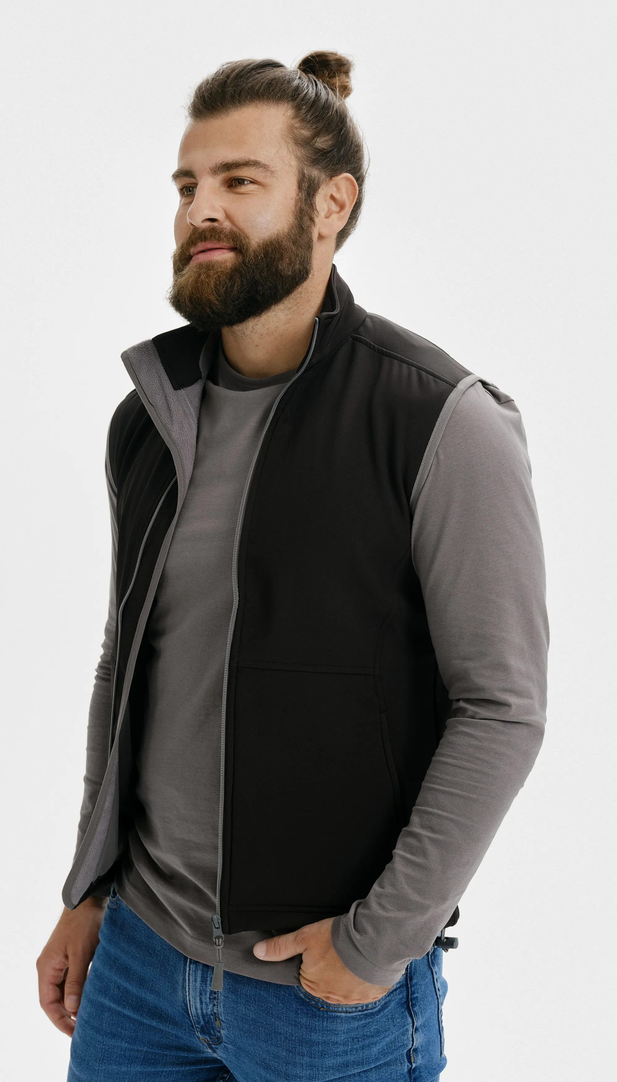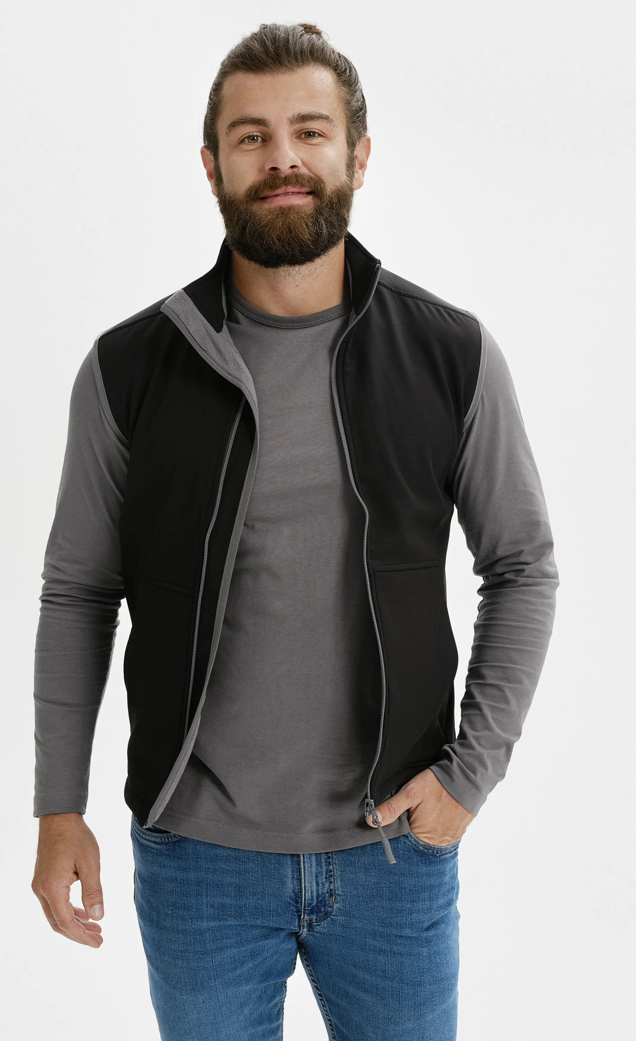 Pánska softshellová vesta s vreckami a celozapínacím zipsom.